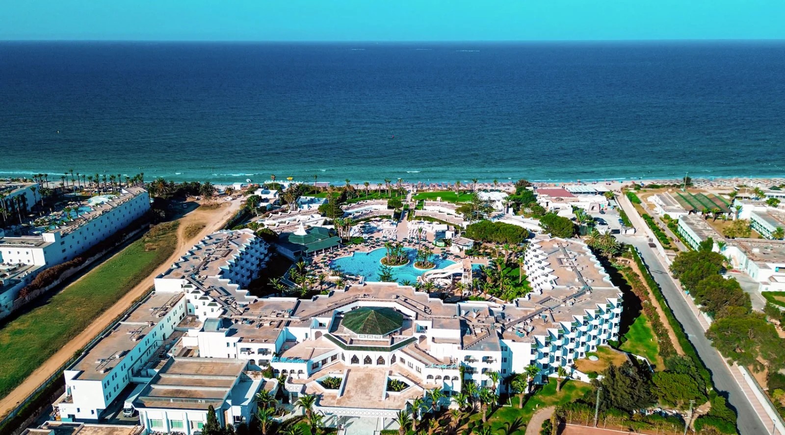 In posizione privilegiata, direttamente sul mare cristallino di Mahdia, questo resort è la scelta ideale per chi cerca relax e comfort. Situato a soli 3 km dal vivace centro città e a circa 50 km dall’aeroporto di Monastir, l’hotel si sviluppa su 4 piani e offre anche accoglienti bungalow immersi nel verde, perfetti per chi desidera maggiore tranquillità. L’accesso diretto alla lunga spiaggia di sabbia fine consente di vivere appieno il mare, mentre nelle immediate vicinanze si trovano negozi tipici e fermate dei mezzi pubblici, per esplorare comodamente la zona. Le principali città e gli aeroporti sono facilmente raggiungibili.