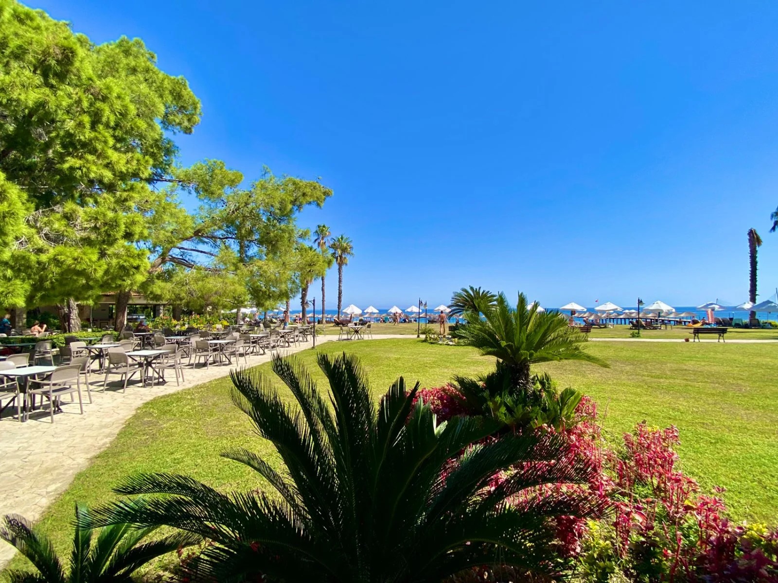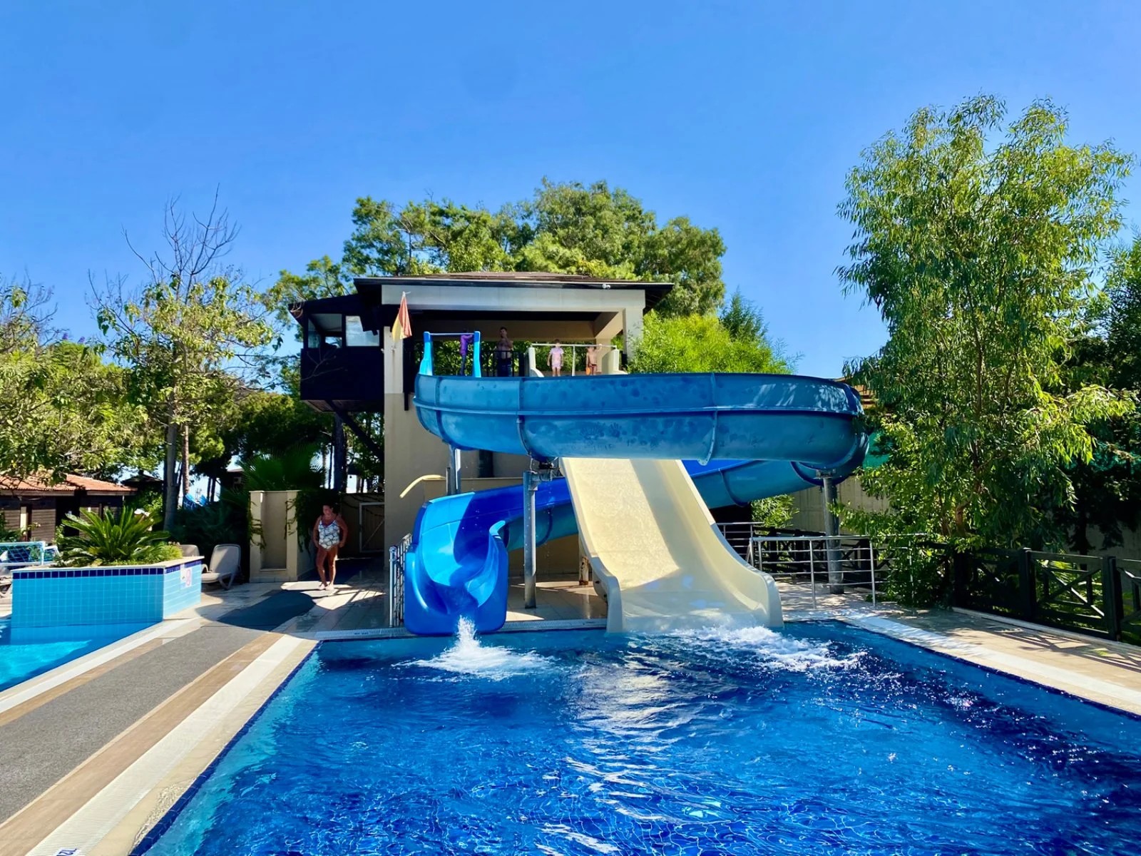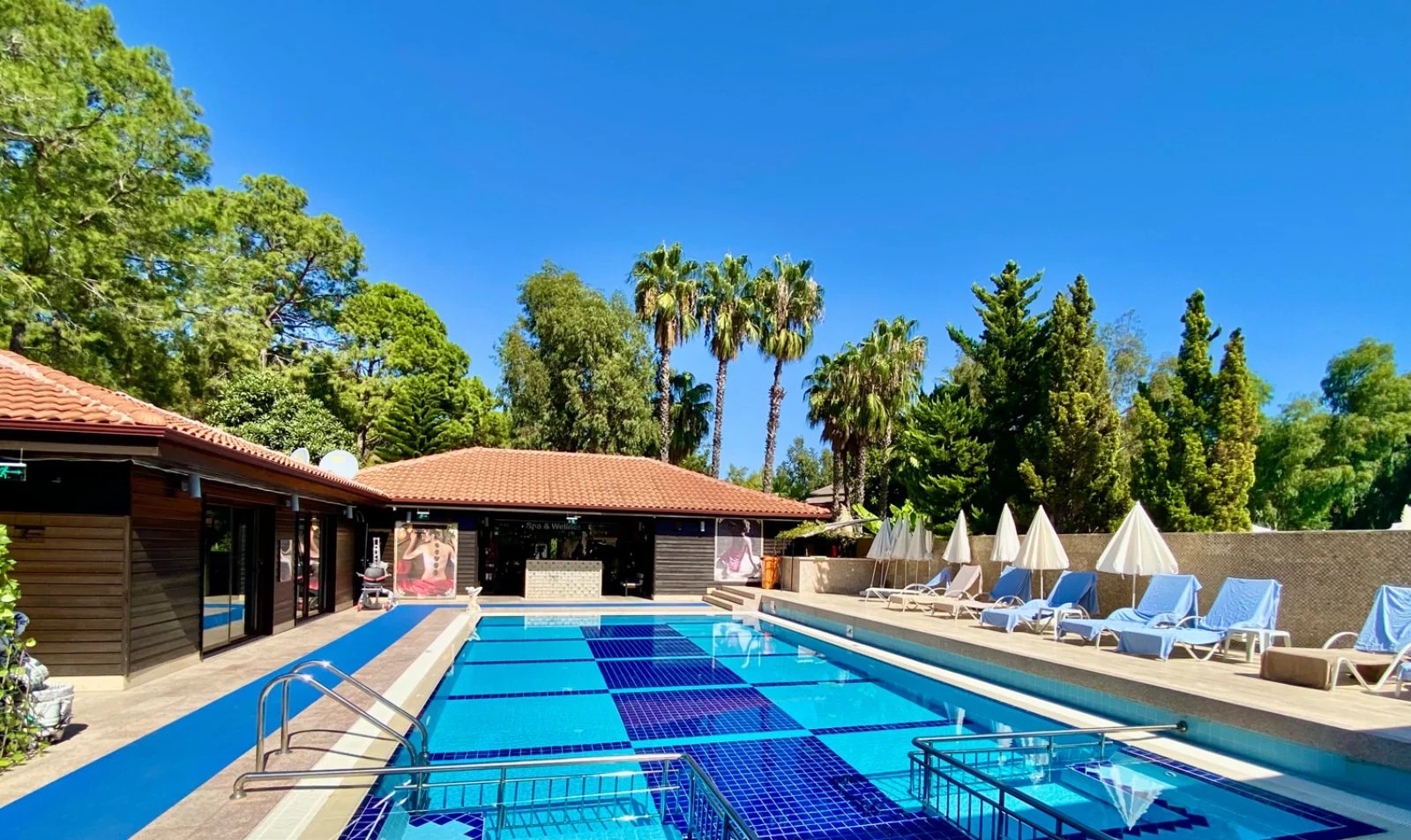 Il villaggio si affaccia direttamente su una spiaggia privata di sabbia e piccoli ciottoli attrezzata. Dispone di 4 piscine esterne di cui una con scivoli, una relax per soli adulti (over 16) e una per bambini, oltre a una piscina scoperta all’interno del centro benessere (per soli adulti, over 16). Uso di ombrelloni, lettini e teli mare gratuiti sia in piscina sia in spiaggia.