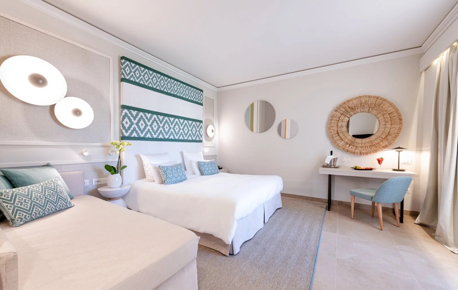 238, suddivise tra camere e suite, dispongono tutte di balcone/terrazzo, connessione Wi-Fi, aria condizionata, cassetta di sicurezza, telefono, servizi privati con asciugacapelli, accappatoi, specchio da trucco. Sono disponibili camere di tipologia superior lato baia e giardino, deluxe lato giardino, grand deluxe lato giardino, family lato giardino, prestige family suite lato giardino e su richiesta junior suite lato giardino e lato baia, prestige suite lato laguna e lato baia e camere comunicanti. A pagamento: servizio in camera, servizio lavanderia, minibar (1 bottiglia di acqua naturale da 1 litro rifornita ogni giorno gratuitamente).