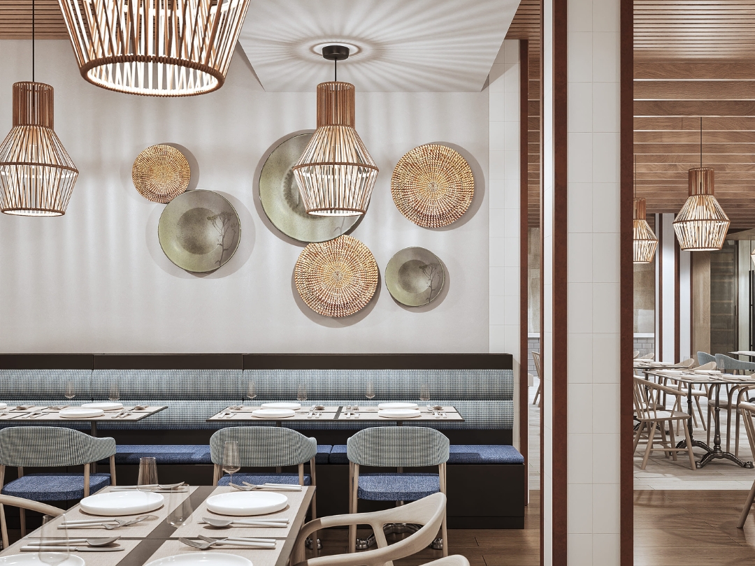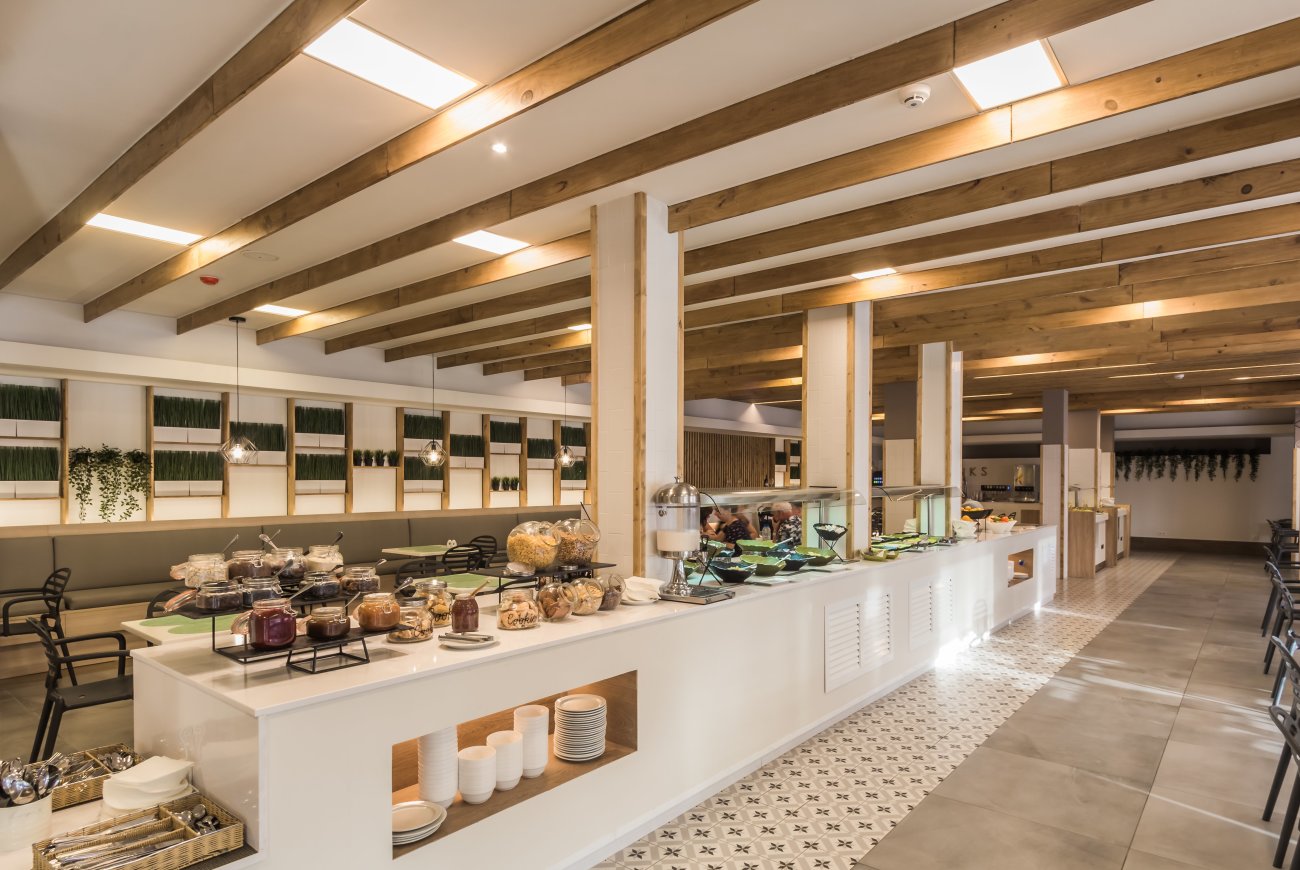 Il trattamento previsto è mezza pensione. La colazione può essere continentale, a buffet o in stile brunch. La la cena è proposta a buffet. Il ristorante principale offre specialità della cucina italiana e mediterranea, oltre a opzioni ipocaloriche, vegetariane e senza glutine. Sono inoltre presenti una caffetteria, uno snack bar aperto 24 ore su 24 e un bar a bordo piscina.