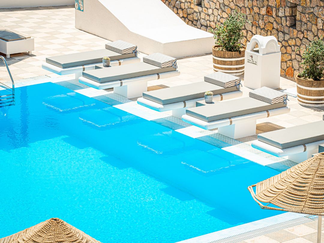 La spiaggia di Perissa Beach, caratterizzata da ghiaia e ciottoli, dista circa 500 metri dall’hotel. Il mare limpido e la lunga distesa costiera la rendono ideale per giornate di relax e passeggiate sul lungomare.