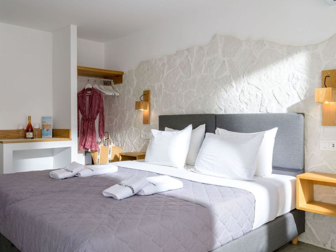 Le camere, arredate in modo semplice e funzionale, sono dotate di tutti i comfort essenziali: aria condizionata regolabile individualmente, Wi-Fi gratuito, TV satellitare a schermo piatto, cassetta di sicurezza e bagno privato con doccia. Disponibili diverse tipologie: camere singole, doppie e triple, alcune con balcone o terrazza e altre con vista mare.