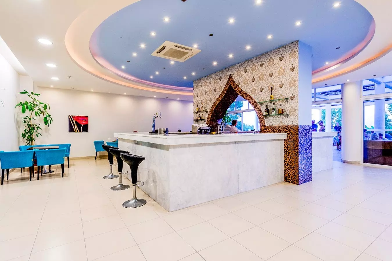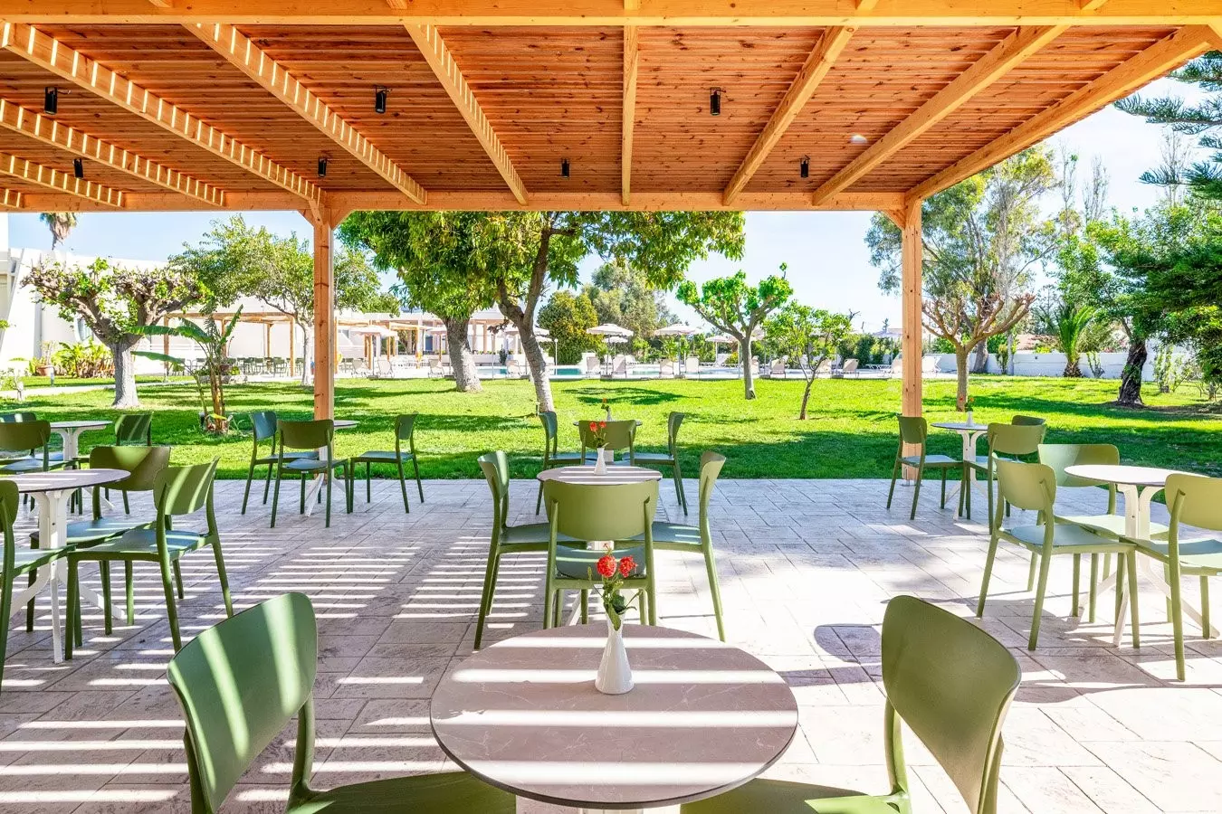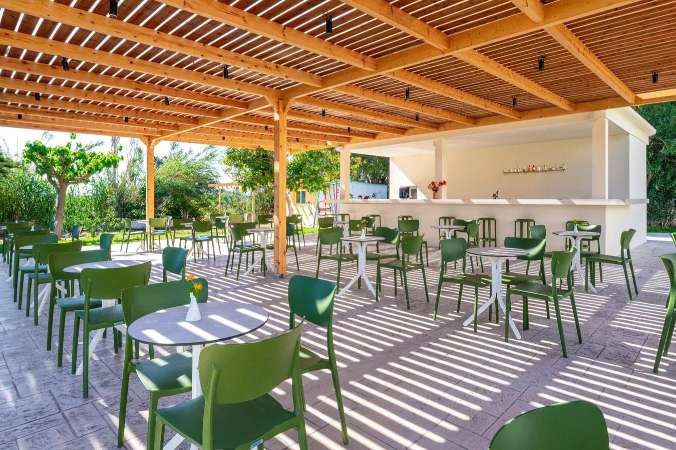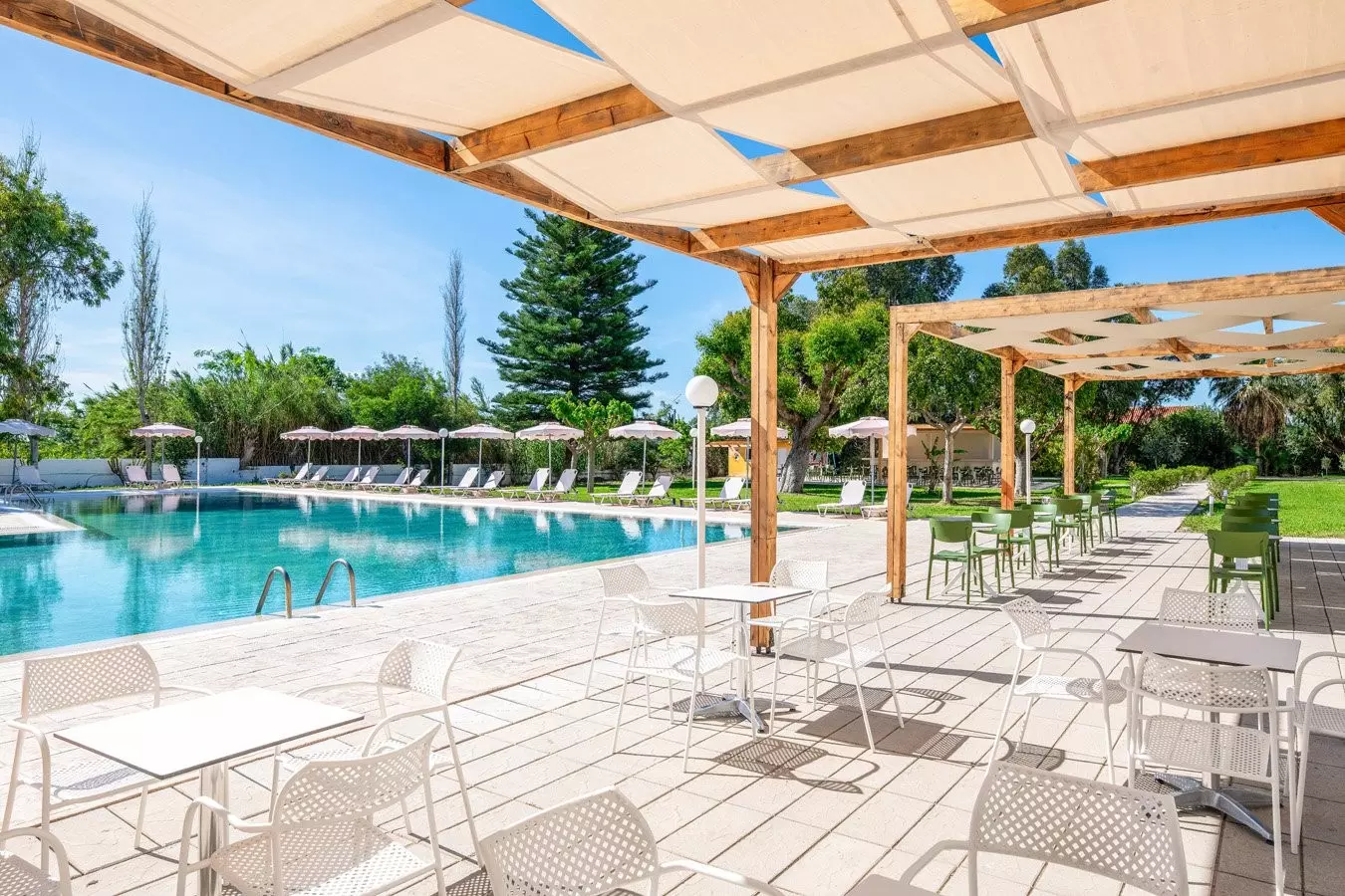Ristorante con servizio a buffet e terrazza esterna, 2 bar di cui uno in piscina, 2 piscine (di cui una per soli adulti) attrezzate con ombrelloni e lettini gratuiti fino ad esaurimento.