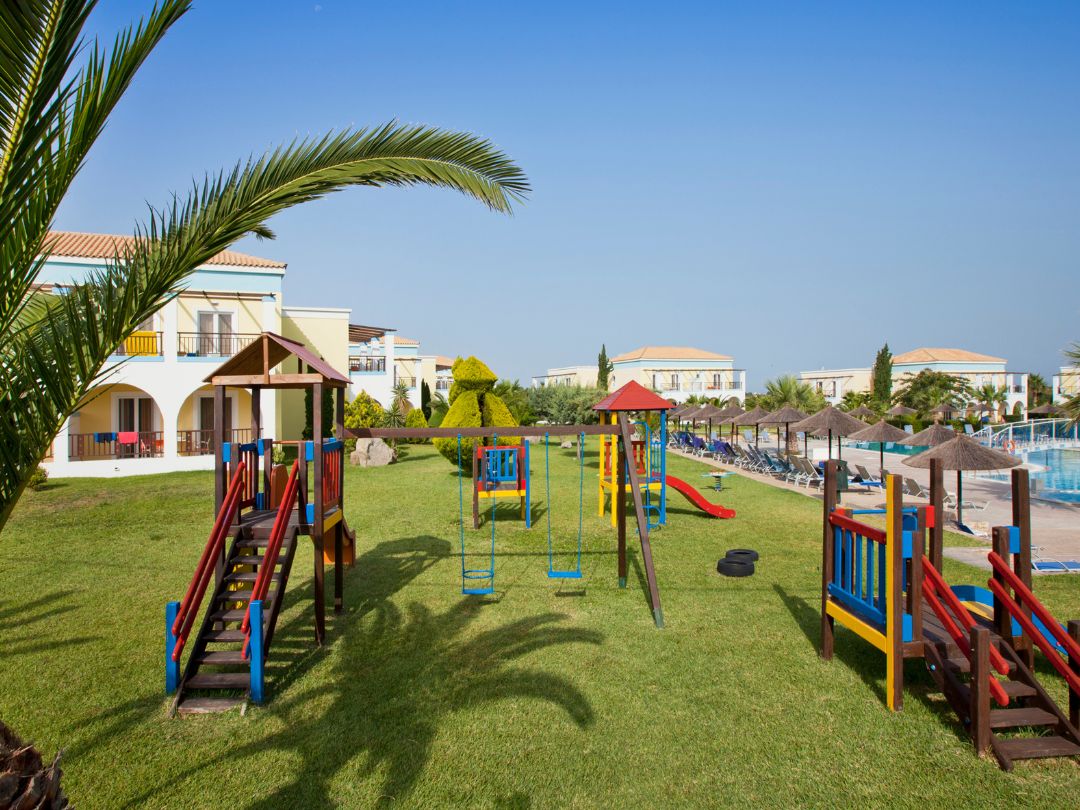L’hotel dispone di 181 camere distribuite tra un edificio principale e 13 edifici secondari. Le camere standard vista piscina offrono letto gemello, angolo cottura, balcone o terrazza, aria condizionata regolabile (da giugno a settembre), connessione Internet, cassaforte (a pagamento) e bollitore (eventualmente a pagamento). Il bagno è dotato di doccia e gli asciugamani vengono cambiati tre volte a settimana.