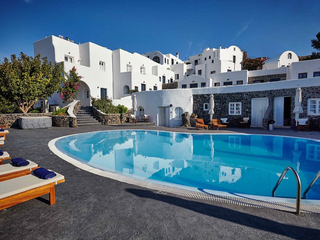 Il Finikia Memories Hotel è una struttura accogliente e dal fascino tradizionale, ideale per una vacanza rilassante a Santorini. Disposto su 3 piani e composto da 24 camere distribuite tra edificio principale e dependance, è stato parzialmente rinnovato nel 2024.
