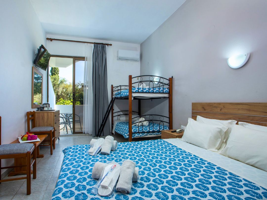 L’ Hotel si trova a ca. 600 m da Kolymbia Beach, una spiaggia di sabbia/ ghiaia servita da un servizio navetta (incluso nel prezzo) in funzione da maggio a ottobre. La spiaggia è attrezzata con sedie a sdraio e ombrelloni a pagamento.