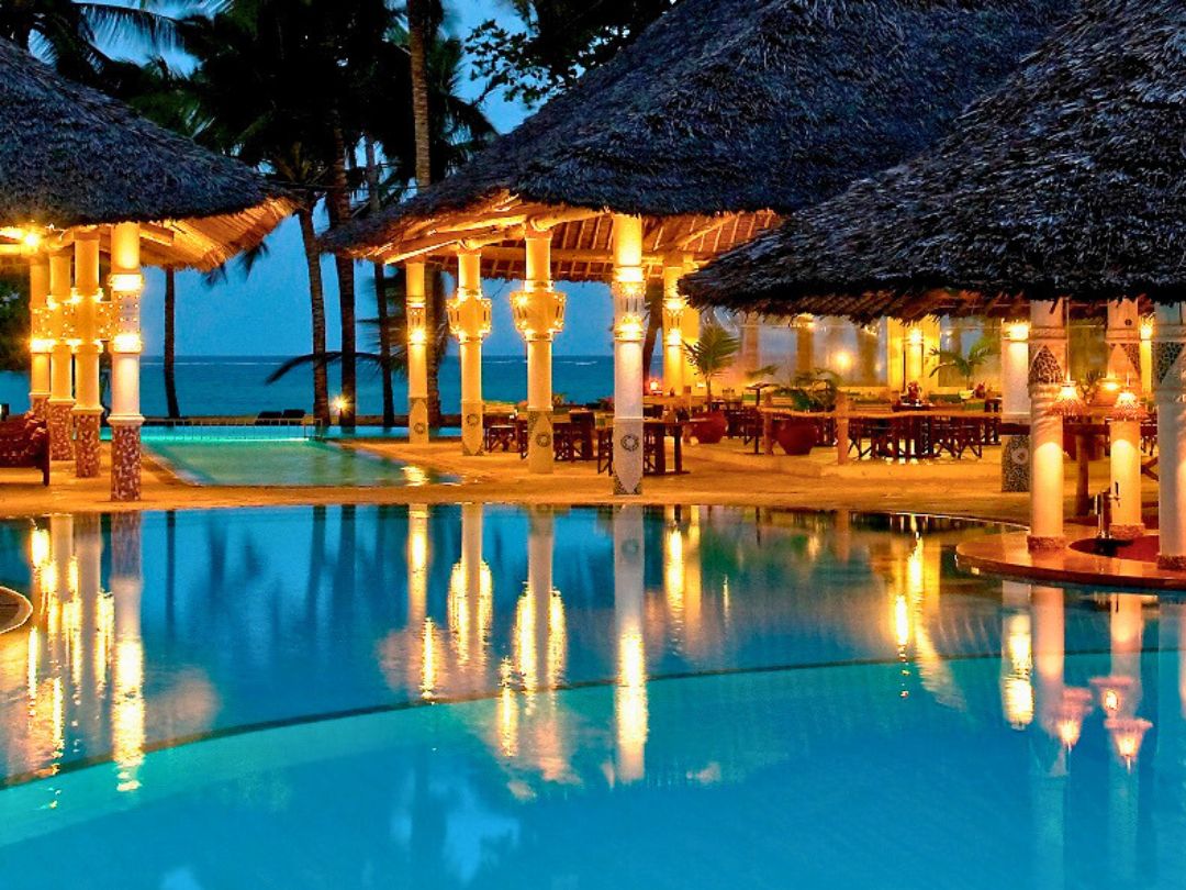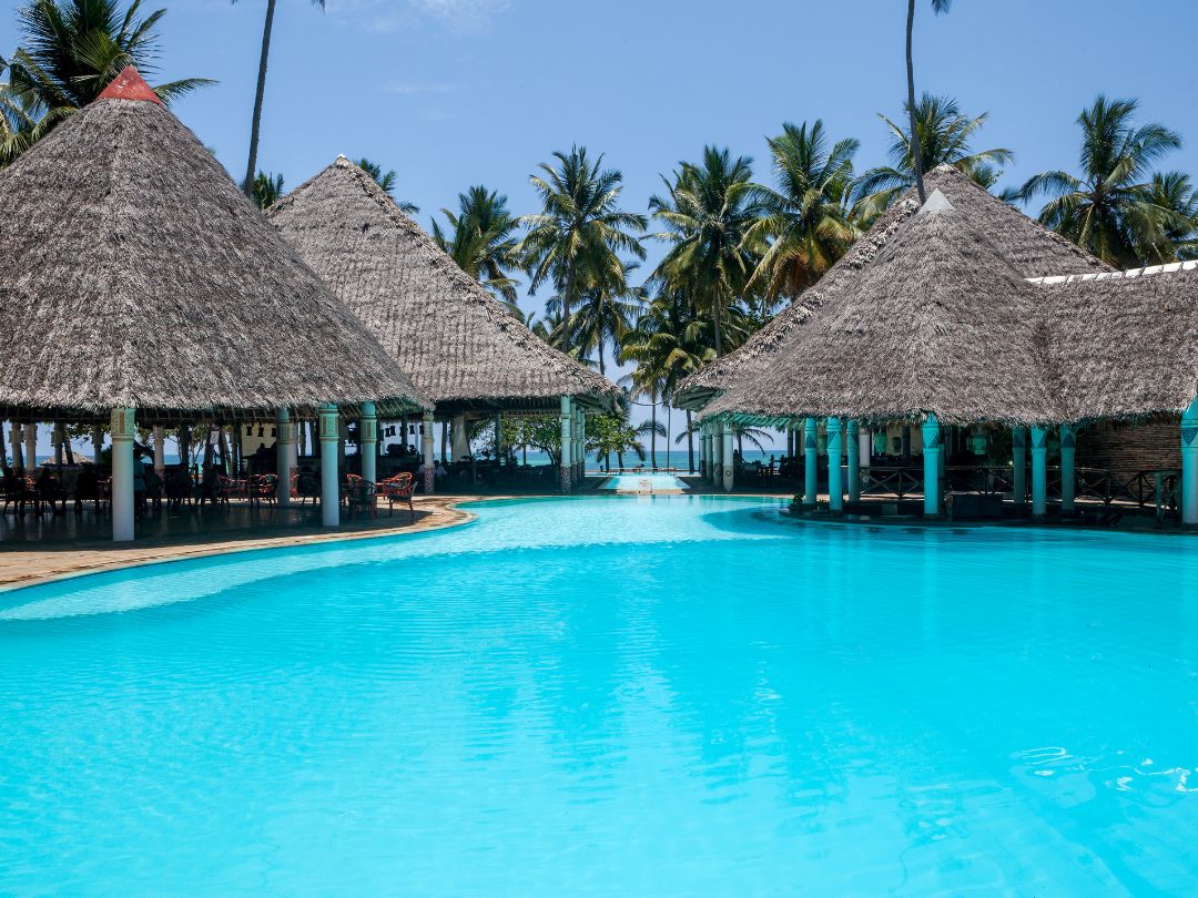 La struttura, recentemente rinnovata, offre camere ampie e curate, una proposta di ristorazione di alto livello, un ricercato centro Spa e un ottimo centro diving. Da segnalare infine gli estesi e curati giardini tropicali che si estendono al bordo della spiaggia, dove i lettini e gli ombrelloni posizionati tra le alte palme creano un’area di particolare comfort e relax con splendida vista sull’oceano, al riparo dai venditori ambulanti che peraltro danno un tocco di folklore e simpatia alle spiagge del Kenya. Anche di sera Diani non potrà che stupirvi data la vivacità che contraddistingue le sue serate: tra i vari localini per un drink e un po’ di buona musica non avrete che l’imbarazzo della scelta: a portata di pochi minuti di taxi o di tuk-tuk, provate il Tiki Bar (a 7 km), l’Apero (a 6 km) o il Diani Backpackers (a 3 km), mentre per qualche serata più dance provate il Manyatta Night Club (a 5 km), il Tandoori Club (a 6 km) o il Sizzlers Pub (a 8 km).
